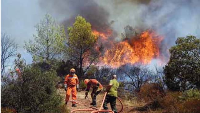 In June and July 2022, heatwaves struck Europe, North Africa, the Middle East, and Asia, as temperatures climbed above 40 degrees Celsius (104 degrees Fahrenheit) in places and broke many long-standing records. In Western Europe, which was already experiencing severe drought, the heatwave fueled fires that raged across Portugal, Spain, and parts of France. In Portugal, temperatures reached 45 degrees Celsius (113 degrees Fahrenheit) on July 13 in the town of Leiria, where more than 3,000 hectares (7,400 acres) had burned. More than half of the country was on red alert as firefighters battled 14 active fires.
